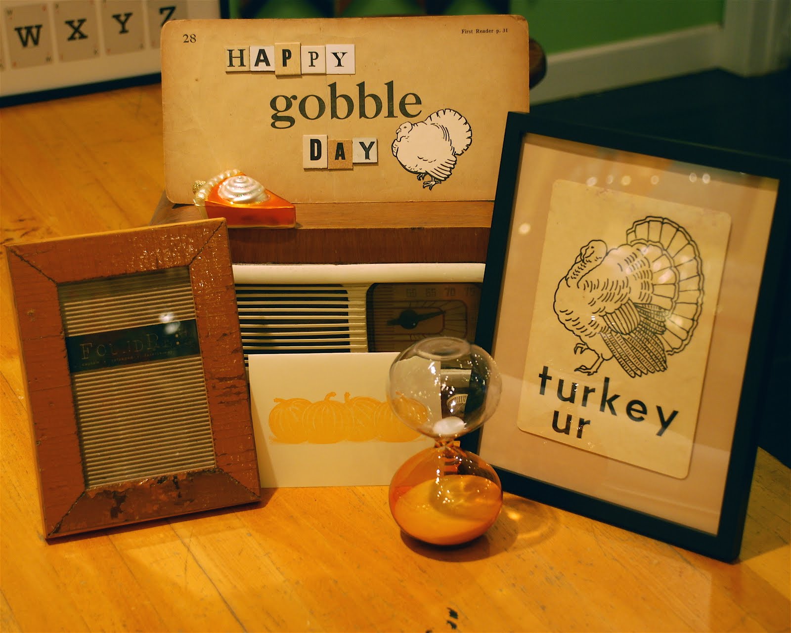 We are hard at work here at Foursided cranking out the swag to liven up your holidays! What's on the menu this week, you ask? Well, besides turkey, cranberries, and stuffing, we have whipped up a few fun Thanksgiving creations perfect for adding to your table this season. Happy Gobble Day, $23, and our Framed Turkey Flashcard, $24, make for fun one-of-a-kind decorations. For extra flair consider adding these fun items: Roost Hourglass, $26; Pumpkin Card by Claudia Laub, $3.50; Foundre Frame, $27; Old World Christmas Pie Ornament, $7.99; Vintage Radio, $48. Happy Gobble day to you and yours this Thanksgiving!