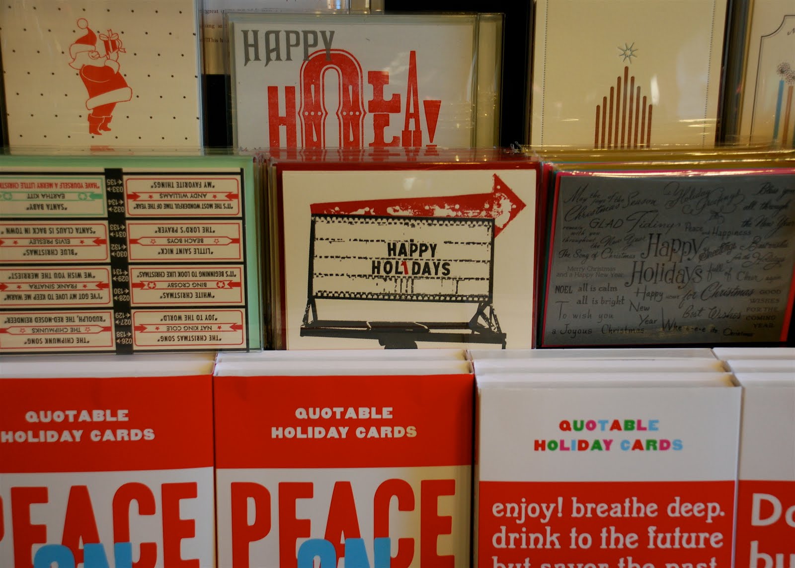 Our boxed holiday cards are now 30% off! Gazillions of styles to choose from at Foursided Andersonville and Twosided - Hanukkah cards too! Pick up a box, grab some stamps, and get those puppies in the mail before it's too late. You know you want to send 'em so get on it - at 30% you have nothing to lose!