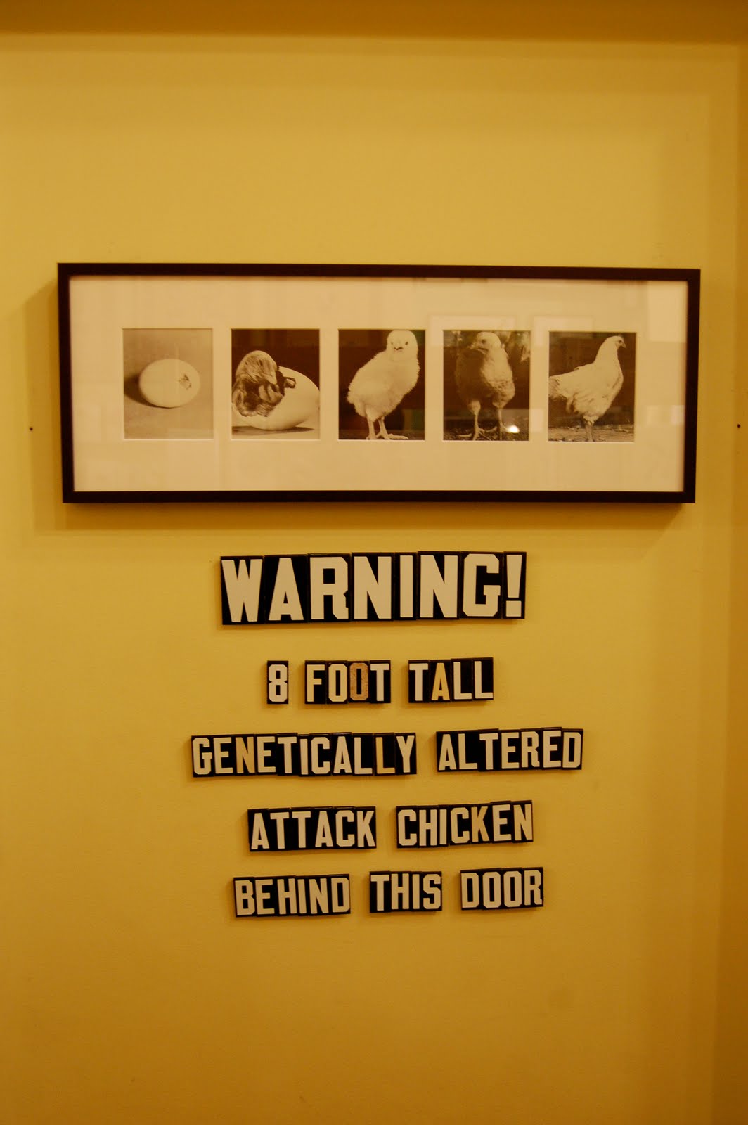 This sign is made from vintage tin marquee letters. We have letters for every kind of sign you can think to make. We'll even do it for you. Oh my gosh! We make stuff, and find time to house giant chickens.