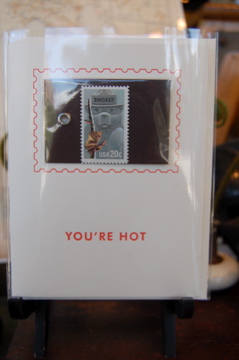 One of our new card favorites are these "stamp" note cards. Comes with a real art stamp sealed in a clear sleeve on the front of the card. $10 from Johnathan Wright Cards. You may say, "Wow that's kinda expensive". When you see them you will understand. Letter press and very hand made. Not the kind of thing you'll be seeing at Walgreens anytime soon, which is fine with us.