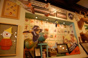 It's a mystery why this amazing bird mobile is still in the store. 20 vintage dye cut American birds silently spinning above people's heads at the front counter.