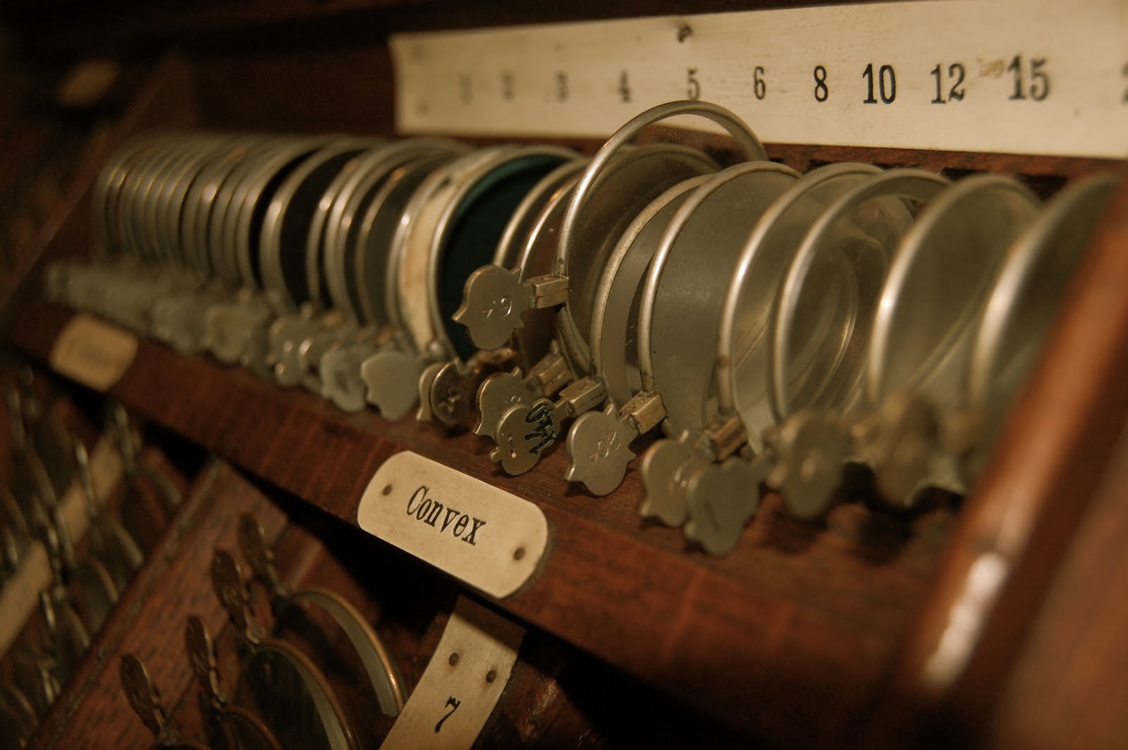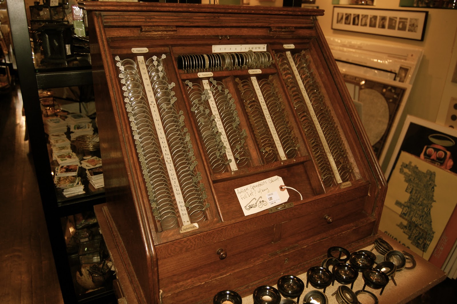 Super amazing optometrist's sample roll-top case from San Francisco c1910!